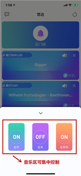 音樂通道輕松切換。在聯網狀態下,打開app主界面就會顯示當前可播放的音樂通道,每個通道名稱可自定義,而且在不跳轉界面的情況下,還可實現對各通道的集中控制。
