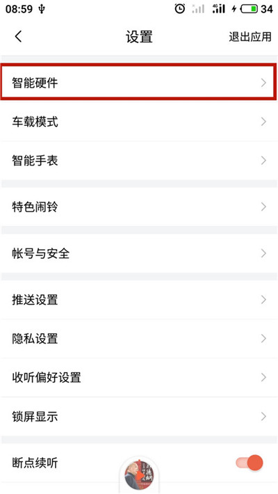 除了內置的云音樂庫,系統還支持WiFi推送功能,連接手機中的音樂軟件,這樣就不用下載第三方軟件占用系統內存,也杜絕了各種廣告推送,既方便又安全。我用自己手機上的網易云音樂和喜馬拉雅試了下,非常好用,只是要注意提前設置。我使用的是安卓系統,以喜馬拉雅為例,首先確保手機與外放設備使用的是同一wifi源,然后打開軟件→進入設置界面→選擇智能硬件,這時候系統會提示讓你下載相關硬件,直接下載就好。