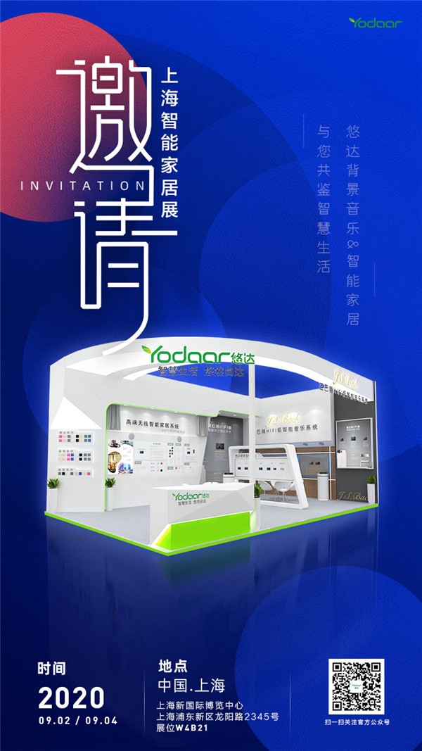 2020上海國際智能家居展覽會將于9月2日—9月4日盛大開展,作為智能家居實力品牌,悠達也將攜系列背景音樂&智能家居產品如約而至,為您全方位展示智能化帶來的生活新方式。